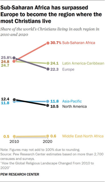 Low birth rates and higher mortality rates among aging Christian populations, especially in Western nations, contributed to the shift. Meanwhile, Sub-Saharan Africa is now home to one-third of all Christians globally, indicating the faith’s pivot toward regions with higher fertility.