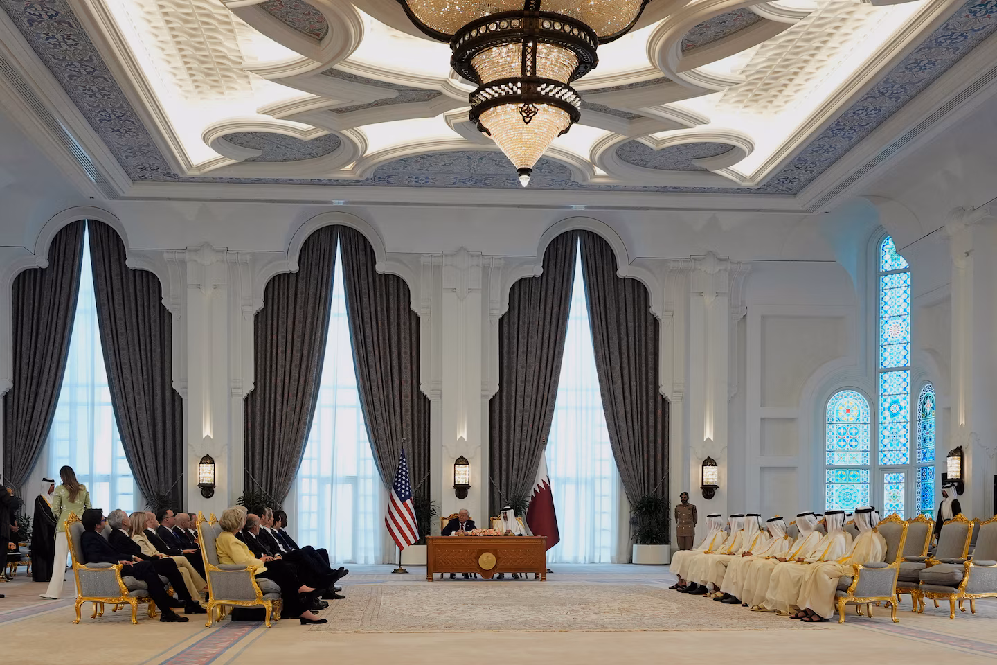The day’s diplomatic engagements culminated with a tour of the opulent presidential palace in Abu Dhabi, where Trump admired the grandeur of the architecture and once again remarked on the region’s “amazing culture.”